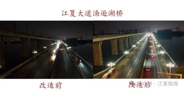 更换新型路灯前后的江夏大道汤逊湖桥