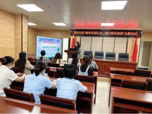 为提高星光社区辖区居民的文明素养,弘扬科学精神,引导居民群众破陈规、除陋习、传文明、树新风,9月22日下午,星光社区新时代文明实践站开展了以“倡导文明礼仪,践行移风易俗”为主题的移风易俗宣传活动。