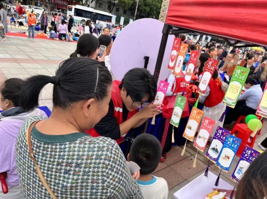 活动现场,分门别类的摊位吸引了众多居民现场咨询、打卡参与。鸡蛋壳、果皮、纸巾分别属于什么垃圾?活动中,居民们驻足在一排排灯谜纸条前,开动脑筋思考,相互交流讨论。
