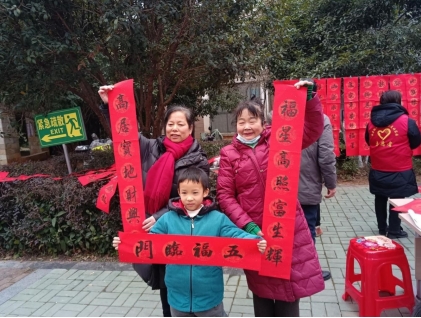 随着活动的开始,大家纷纷请书法协会老师书写自己中意的春联,一副副散发着清新墨香的大红春联展现在人们眼前,喜庆的话语充满了浓浓的年味。看着书法协会的老师们大显身手,许多社区居民也跃跃欲试,拿起毛笔在一张张喜庆的大红纸上写下了祝福的话语。