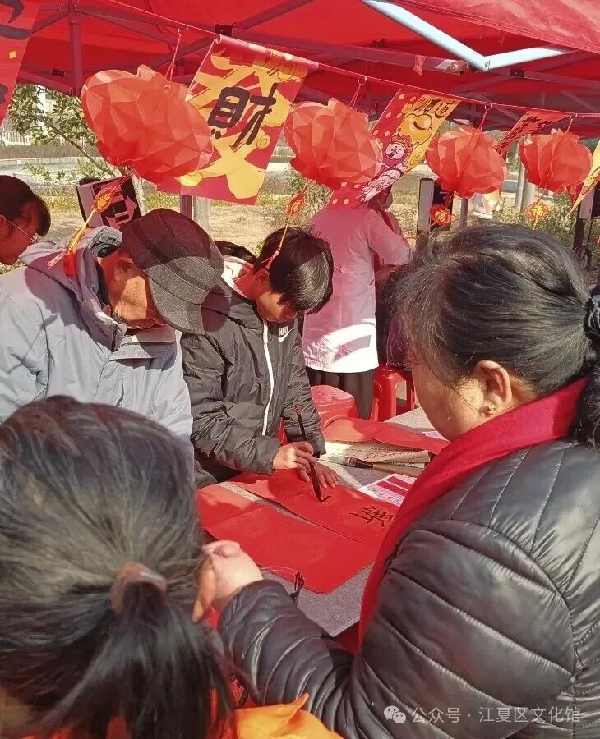 活动现场,非遗展示与体验板块成为焦点。在布艺与编织摊位前,非遗传承人正在展示金口特色的传统布艺制作技艺;写福送春联、福字墙打卡区域同样人气旺盛。居民们有序排队,根据自己的喜好挑选春联内容。福字墙前,居民们亲手贴上大红福字,构成了一面充满集体祝福的温暖景观,许多居民在此合影留念,记录下这充满年味的美好时刻。