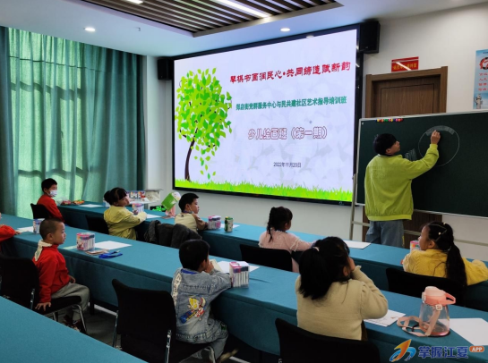 11月20日,江夏区郑店街党群服务中心与民共建社区艺术指导培训班第一期绘画班正式开班,来自红旗小区的22名青少年在专业美术教师的带领下画出了一幅幅色彩斑斓的图画。
