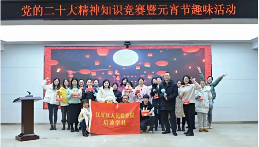 新年风色日渐好,晴天仰见雁已回。为深入学习贯彻落实党的二十大精神,检验政治轮训学习成果,结合“我们的节日 •元宵节”活动要求,2023年2月3日,江夏区人民检察院启迪学社(青工委)举办党的二十大精神知识竞赛暨元宵节趣味活动。活动分为启迪学社工作交接仪式、党的二十大精神知识竞赛、元宵节趣味活动三个部分。