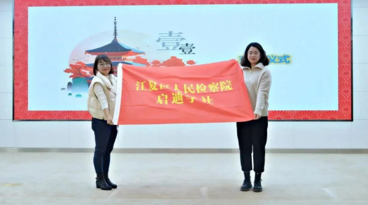 在大家的掌声中,启迪学社工作交接仪式正式开始。首先,原社长宋禹倩从重党建、创业绩、固根本三个方面总结了启迪学社过去五年的工作。接着,新任社长洪叶子郑重地从宋禹倩手中接过社旗,她在表态发言中表示将肩负起青年工作负责人的使命,用情用力办好每一次青年活动,让江夏检察青年在活动中成长、进步。最后,政治部副主任官开寄语全体青年干警,希望大家在新征程,在读书中增“底气”,在运动中树“朝气”,在履职中扬“正气”!