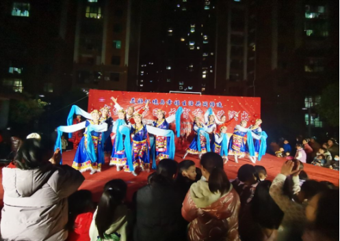 整场演出活动持续了近2个小时,演出最后在舞蹈《哈达献给党》中圆满结束,整场演出吸引了近600名居民现场观看。