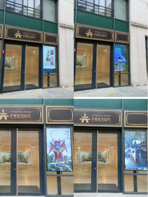 新华社·巴黎东方中心橱窗屏播出画面截图。