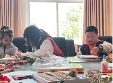 “把花装进画纸里,让春天留在作品中,这是我们和小朋友们携手完成的一场春日邀约。小朋友们都很有创意,看到各色的花卉在自己手中变成不同的样子, 脸上满是骄傲。”志愿者鲍晓佳如是说。
