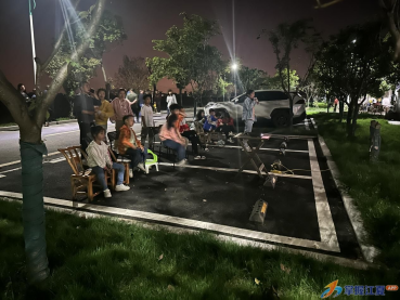 说干就干,张老师把设备搬出来,观影前,提前先调试好屏幕和音响设备,社区工作人员为居民朋友们准备好观影小凳子。