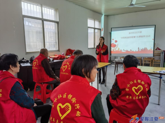 自江夏基层治理创新实验区创建以来,金水社区充分依托“银龄行动”老年志愿者参与社区治理民生微实事项目,创新“老年志愿服务+社区治理”新模式,通过搭建协商议事平台,调动居民参与社区事务的激情,在辖区招募了一批有爱心、讲奉献、意愿强的退休老人加入老年志愿者队伍。同时,邀请专业社工团队主讲老师开展服务技能、探访技巧、家庭保健等培训讲座,提升老年志愿者的服务能力及业务水平。